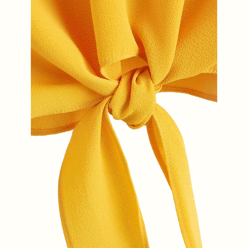 Layed Sleeve Knot Hem Crop Blouse